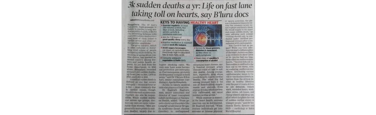 Home/News & Events/3000 sudden deaths a year: Life on fast lane taking a toll on hearts, say Bengaluru doctors